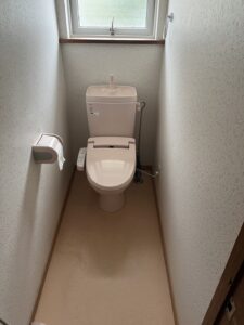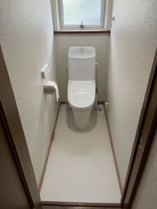 トイレの床をはがし床下で穴を掘り水抜栓を交換し、クッションフロア張替え、トイレ交換作業を行いました。