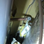 水漏れの場所は、上の階に立ち上がっている水道管から水漏れしていました。