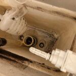トイレのタンクを確認した所、フロート弁という部品が劣化してタンクの水が便器に流れ続けている状態でした。