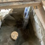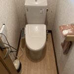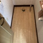 トイレの床をはがし床下で穴を掘り水抜栓を交換し、クッションフロア張替え、トイレ交換作業を行いました。
