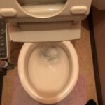 バケツに水をくんで流すとペーパーが流れましたので排水管は問題がなさそうでしたので大便器に異物が入っている可能性が高い為、大便器を外して異物を取り除く作業になるとお客様にお伝えし、事前にお見積りをご提示しご納得いただき作業を行いました。